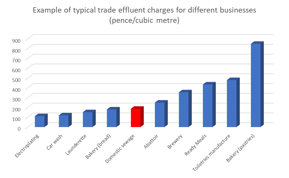 Trade effluent charges apply to businesses with a consent to discharge. These charges relate to the cost of using the sewer network and treatment at the sewage works